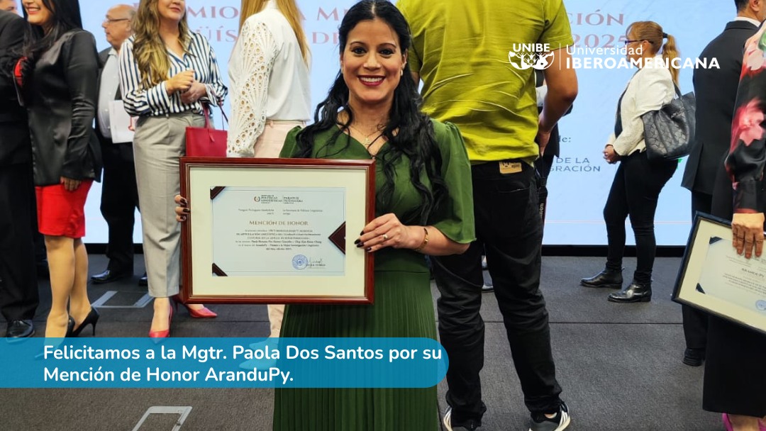 UNIBE celebra la Mención de Honor AranduPy otorgada a la Mgtr. Paola Dos Santos