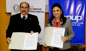 El pasado miércoles 2 de julio de 2014 se realizó en la sala de rectorado de la Universidad Iberoamericana la Firma de Convenio de Cooperación Interinstitucional entre la APUP y el Ministerio de Trabajo, Empleo y Seguridad Social. Esta consiste en establecer entre las partes los mecanismos y canales de coordinación y programación de acciones para la implementación y funcionamiento de asistencia para el desarrollo de estrategias conjuntas, receptivo y sustentable a nivel país. El objetivo principal es estructurar y profundizar vínculos de cooperación técnica, establecer procedimientos y compromisos para la ejecución de Programas que apunten al desarrollo de lineamientos de acciones interinstitucionales con el objetivo de optimizar la gestión pública en materia laboral y seguridad social.