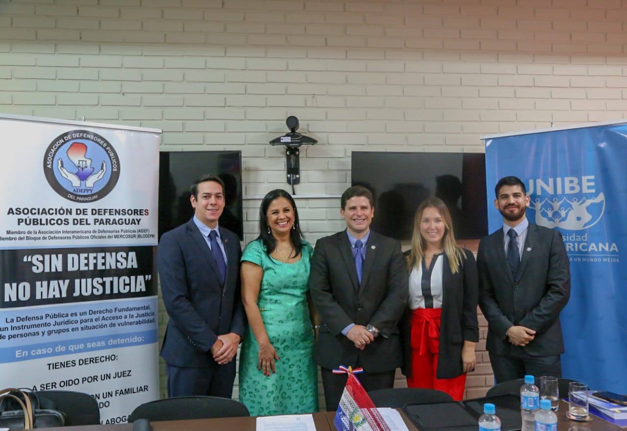 La Universidad Iberoamericana representada por la Dra. Sanie Romero de Velázquez, Rectora de la UNIBE, y el Mag. Eduardo Velázquez, Director de La Facultad de Posgrados y la Asociación de Defensores Públicos del Paraguay representada por el Presidente DP Martín Muñoz Carman, el Vicepresidente 1º DP Rodrigo Álvarez, la Coordinadora de Capacitaciones DP Adriana Planas han suscripto un Convenio de Cooperación Interinstitucional.