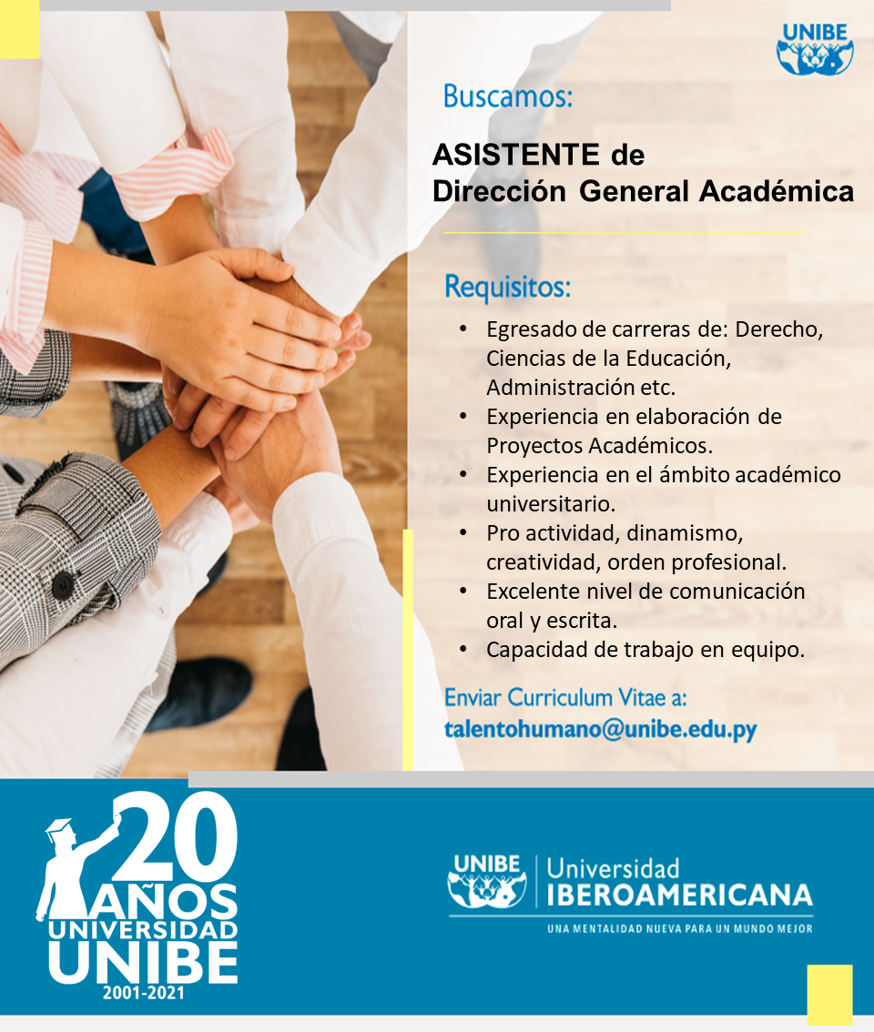 La Universidad Iberoamericana comunica la vacancia disponible para ocupar el cargo de Asistente de Dirección General Académica.