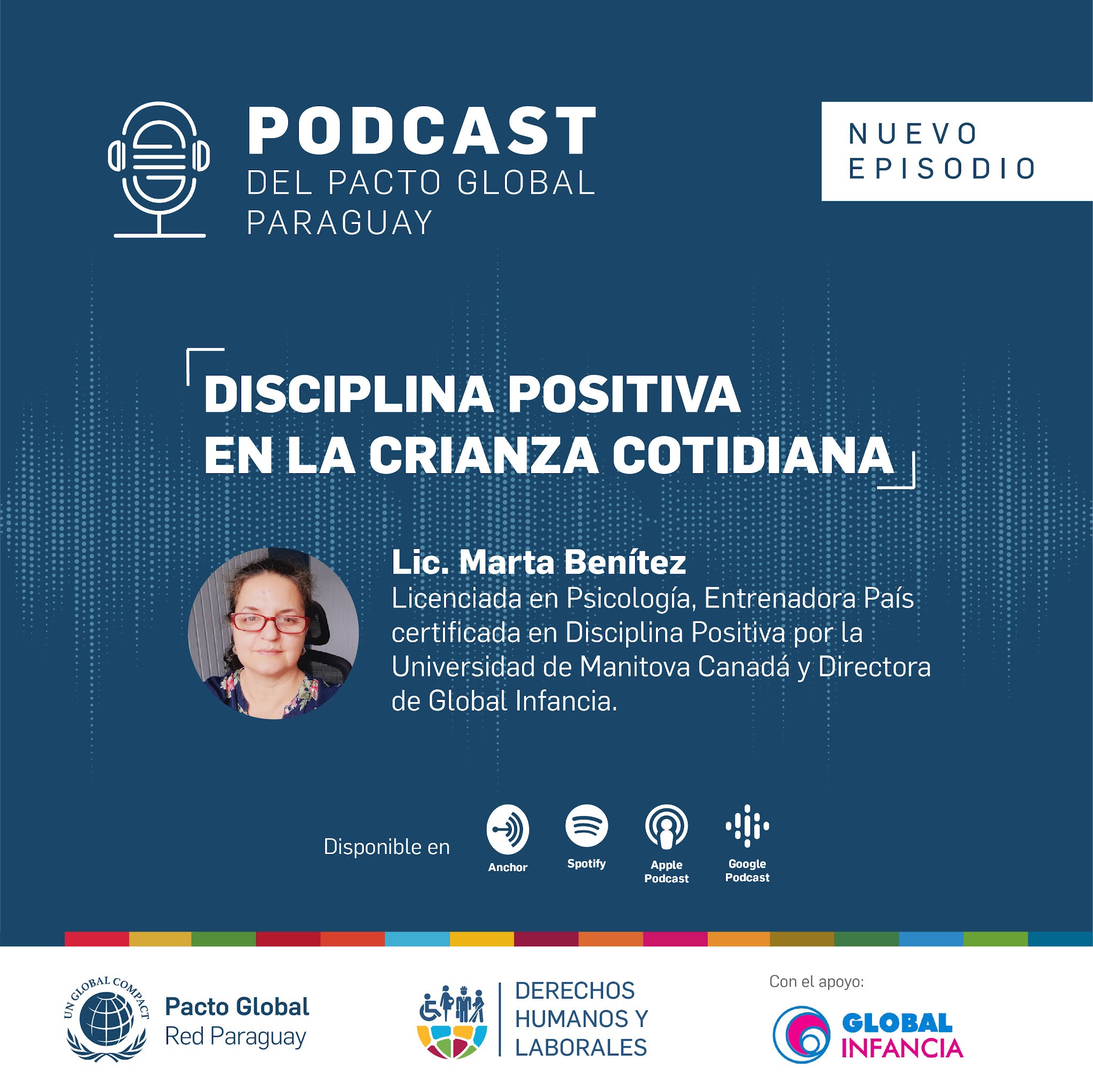 Invitada Especial: Lic. Marta Benítez, Licenciada en Psicología, Entrenadora País certificada en Disciplina Positiva por la Universidad de Manitova Canadá y Directora de Global Infancia, una organización que trabaja por los derechos humanos de la niñez desde hace más de 25 años.