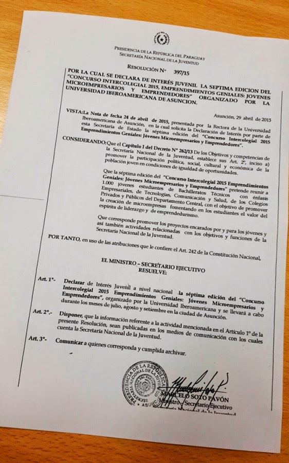 Uno de los proyectos que la institución ha ejecutado con bastante éxito en cuanto se replicado en años siguientes, es el que apunta a trabajar con jóvenes estudiantes de la Educación Media en capacitándolos como emprendedores, cada proyecto culminaba con una exposición de proyectos, en la cual los estudiantes presentaban emprendimientos que crearon durante el proceso de capacitación.