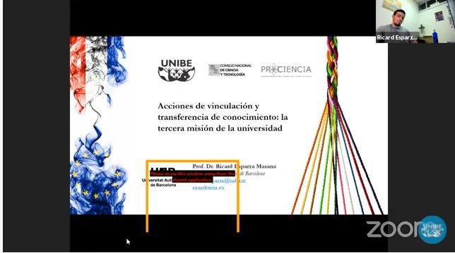 El seminario internacional “Acciones de vinculación y transferencia de conocimiento: La tercera misión de la Universidad” estuvo a cargo del PhD. Ricard Esparza Masana, de la Universidad Autónoma de Barcelona, y se centró en 5 grandes ejes temáticos en los que se resaltó la investigación en la universidad, las aplicaciones que se pueden obtener de los resultados de investigación, cómo reducir brechas que puedan existir entre la oferta y la demanda, cuáles son los incentivos que se le pueden otorgar a los investigadores para las actividades trasferencia y los incentivos que tiene la universidad.