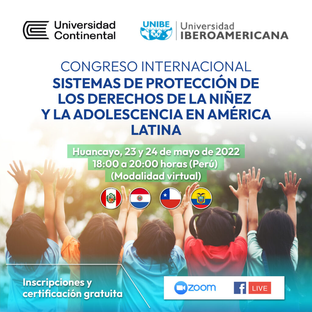 El Congreso Internacional: Sistemas de Protección de los Derechos de la Niñez y Adolescencia en América Latina, se llevará a cabo los días 23 y 24 de mayo próximo, de 18:00 a 20:00 horas (Horario de Perú), a través de la modalidad virtual.