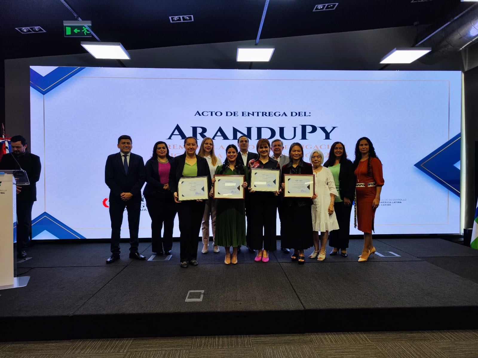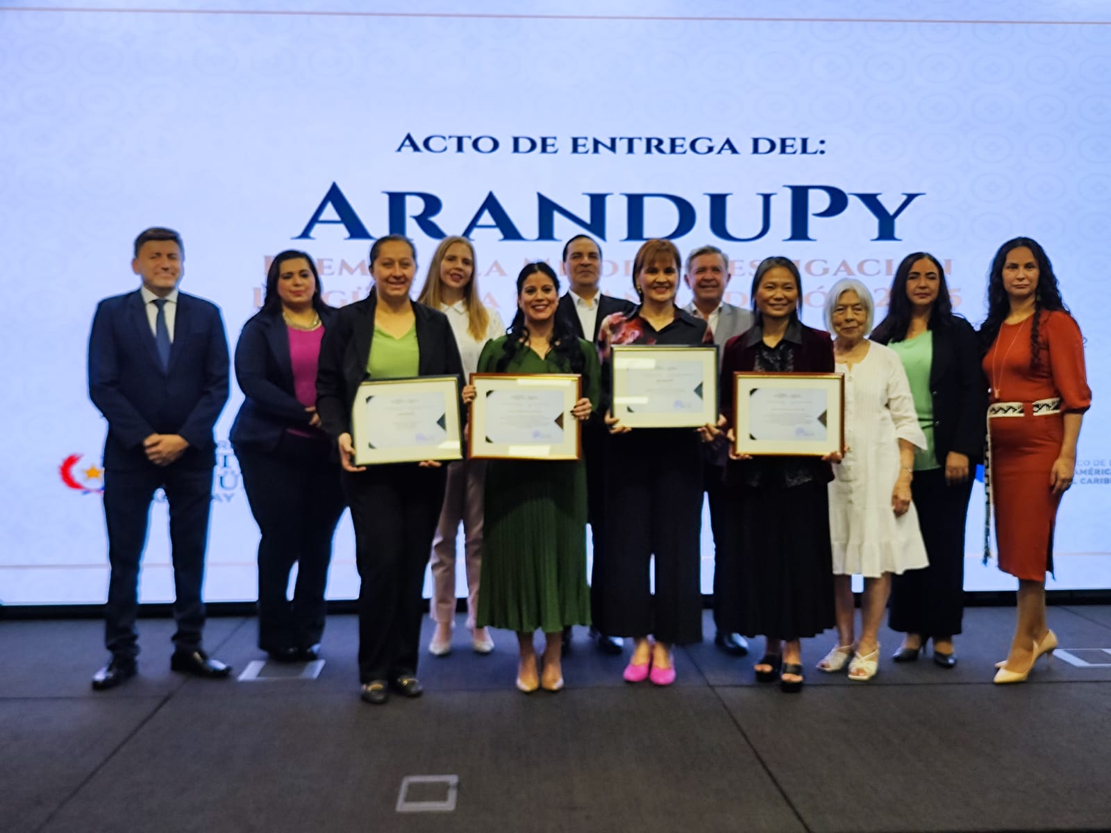 La UNIBE felicita a la Mgtr. Paola Dos Santos, quien ha sido distinguida con la Mención de Honor del Premio AranduPy – Mejor Investigación Lingüística del Año, Edición 2025.